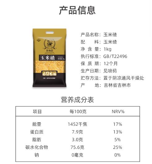 老爷岭 玉米碴1公斤