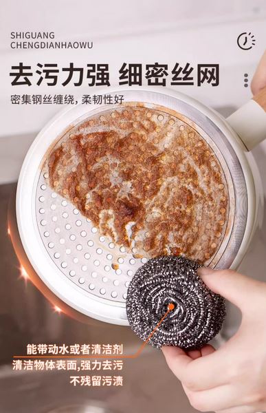 • Powerful Cleaning: The stainless steel construction provides tough scrubbing power, effectively removing tough stains, burnt food, and grease.