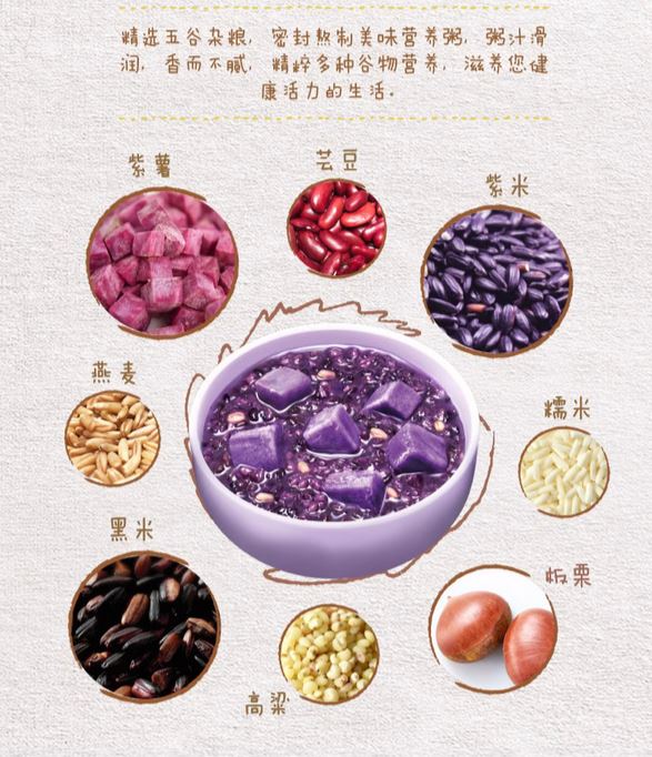 Enjoy the nourishing goodness of Yin Lu Hao Zhou Dao Purple Sweet Potato and Black Rice Porridge—an easy, nutritious, and delicious addition to your diet!