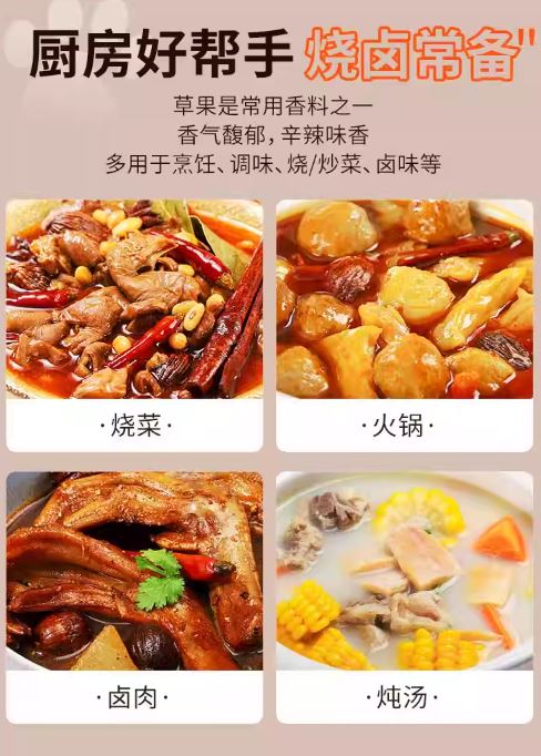 非常适合制作浓郁、美味的炖菜和汤, 十六铺草果 还可以与五香粉中的其他香料搭配,或作为腌料的调味品,为您的厨房带来正宗的味道。